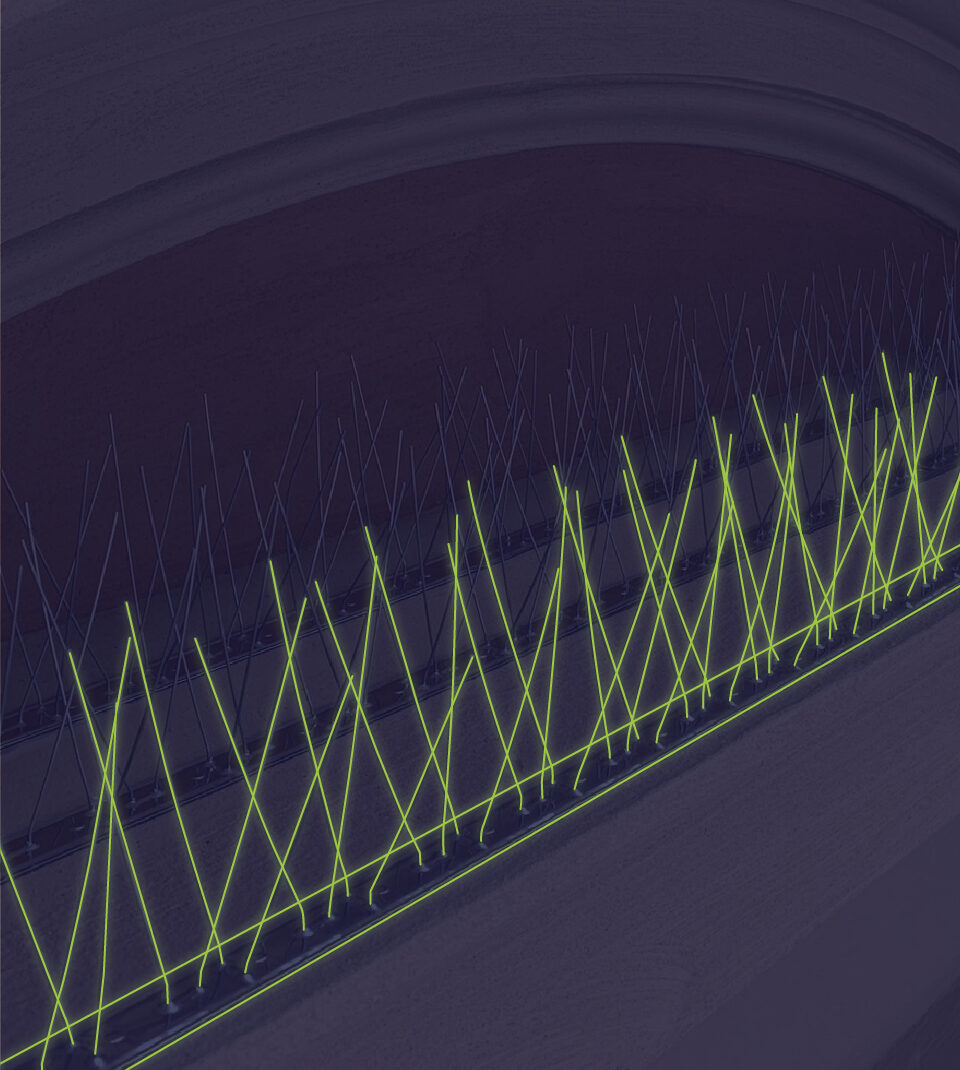 Un sistema dissuasore professionale impedisce ai volatili di posarsi o nidificare, mantenendo le aree pulite e sicure senza arrecare loro alcun danno.